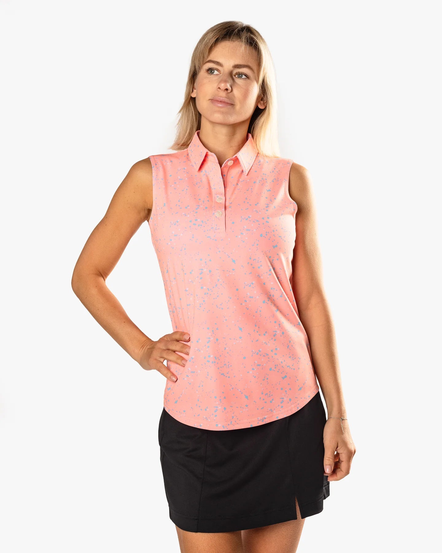 Style meets performance with our premium technical fabric.  Our women's performance golf polos were designed with a 4-way stretch, UPF 40 sun protection, moisture wicking technology and a breathable poly spandex blend that is wrinkle resistant.
